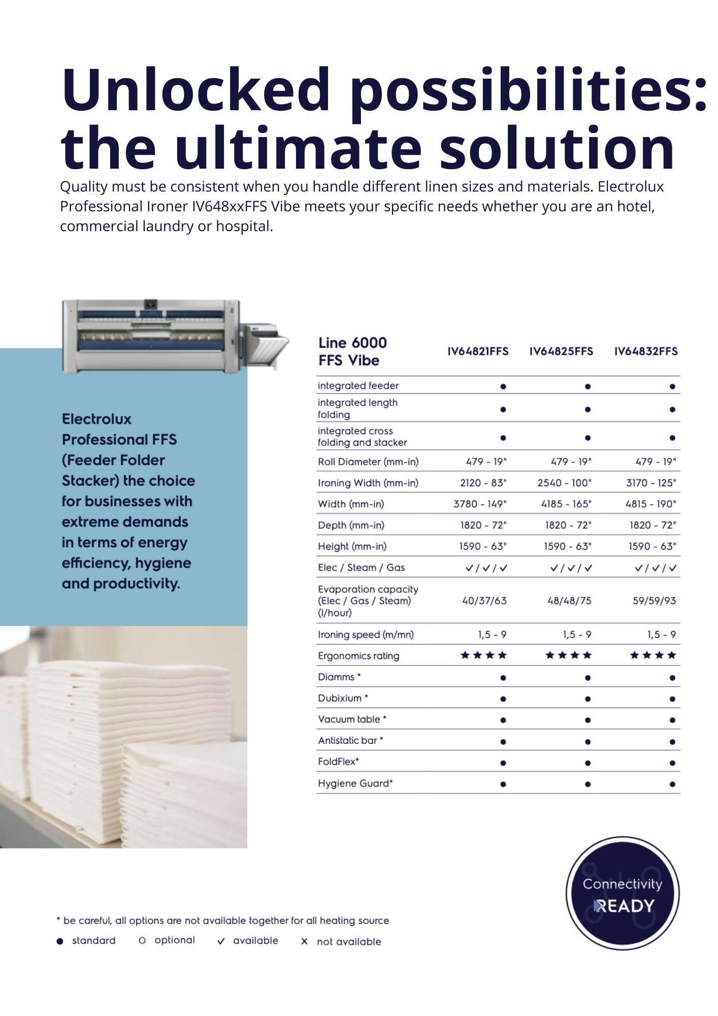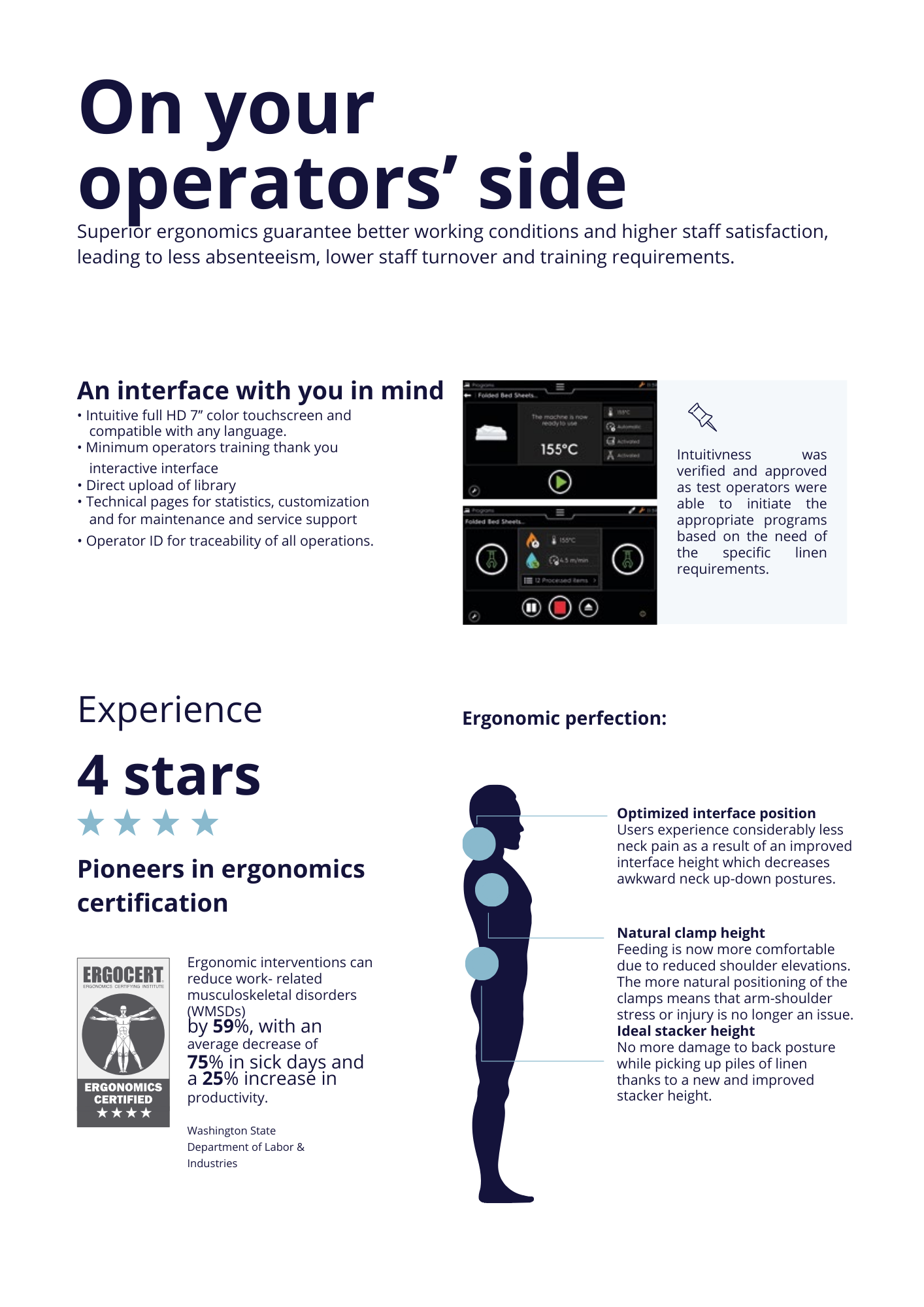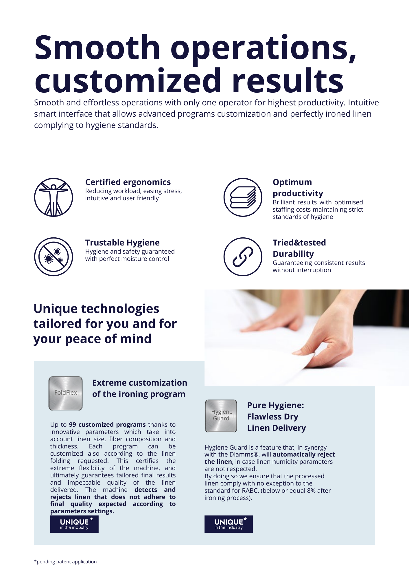 Up to 99 customized programs can be created, based on the type of linen, their size, fiber composition but also their thickness.