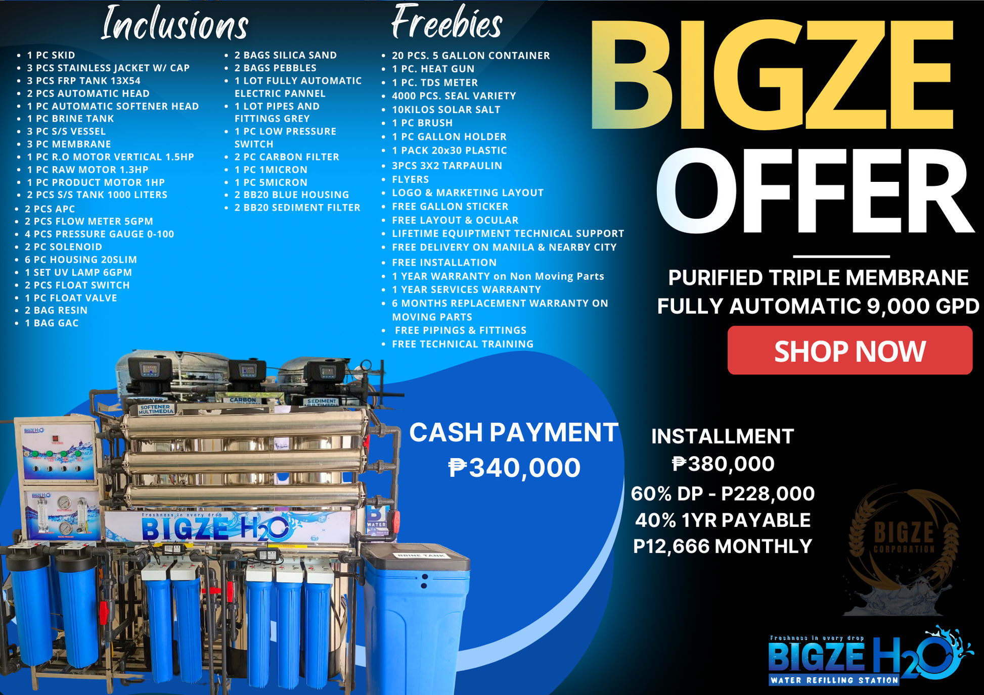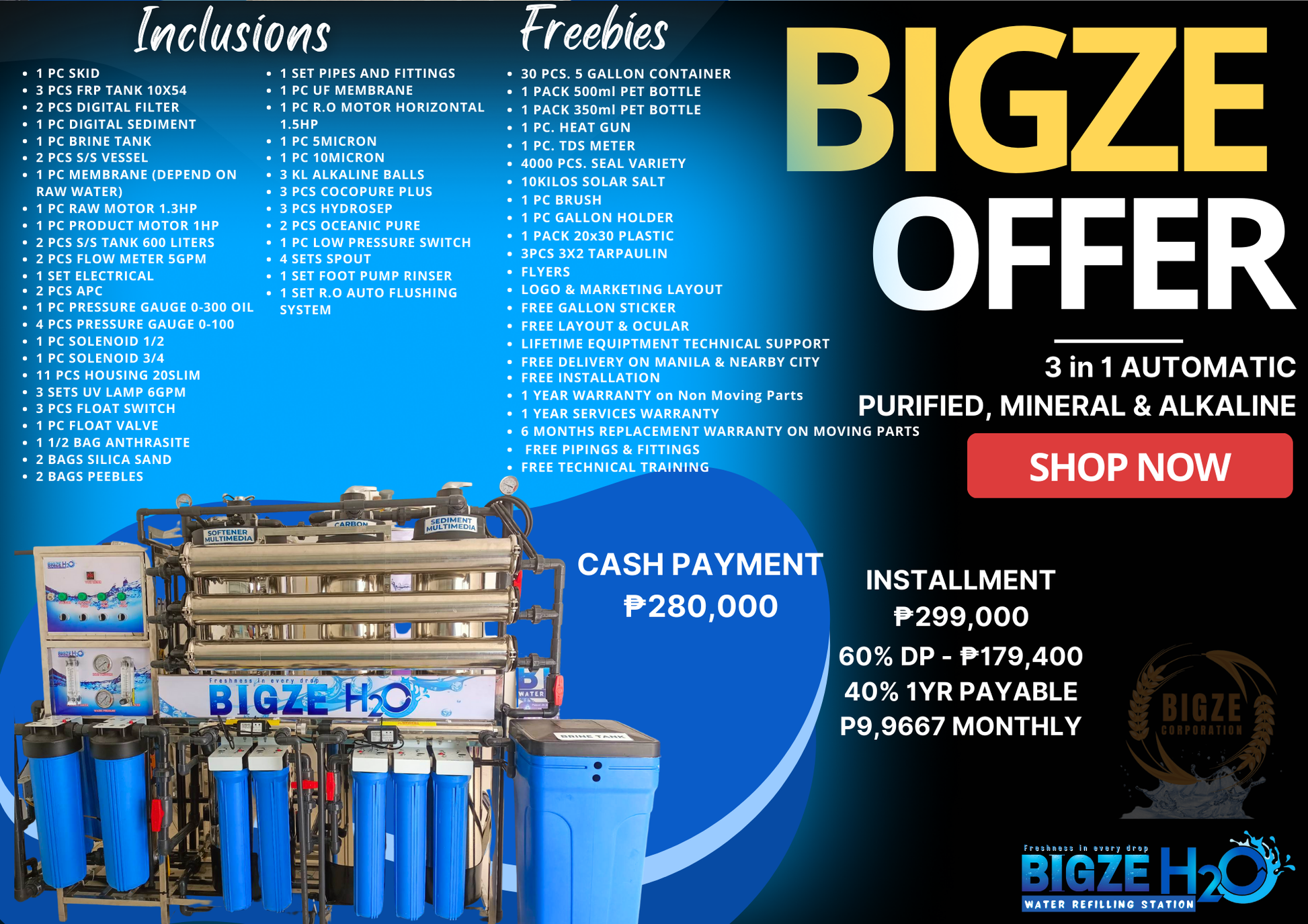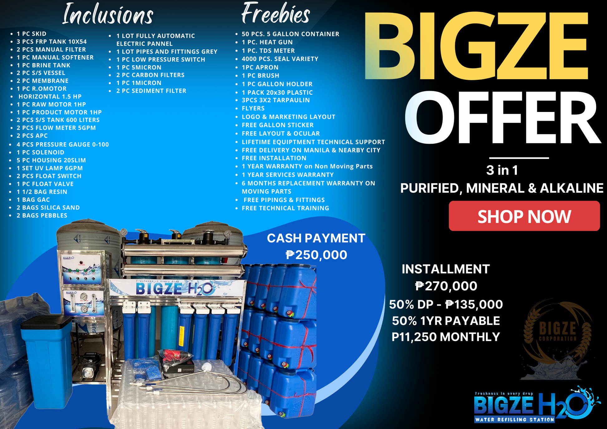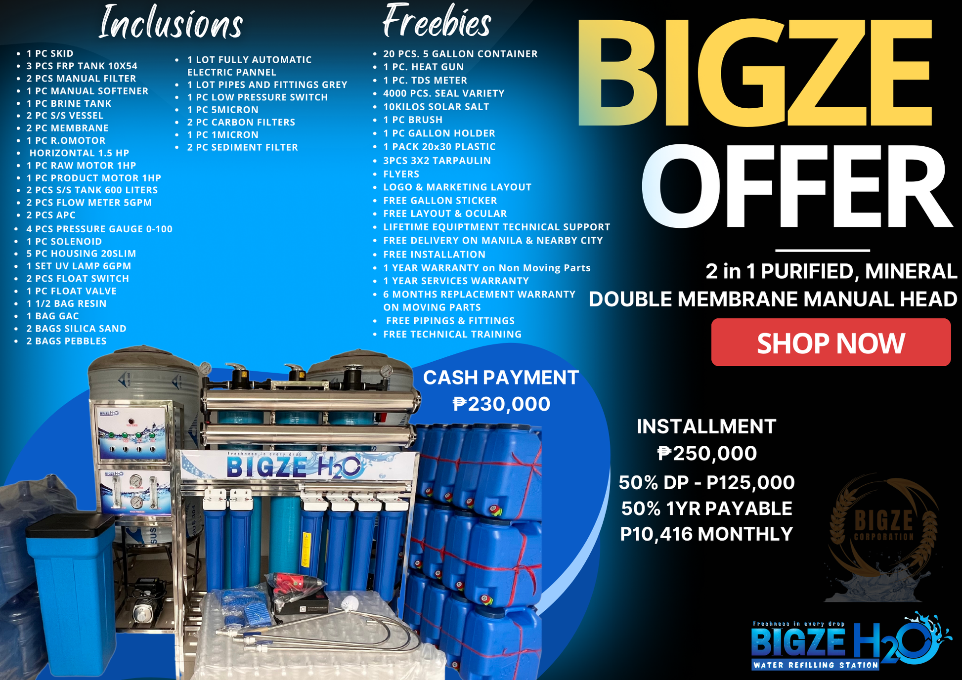 Introducing our Complete and Ready-to-Operate Water Refilling Station Package, carefully designed by BigZe Corporation to simplify the process of starting and running your own water refilling business. With this comprehensive package, we provide all the necessary components and support to ensure a hassle-free experience.