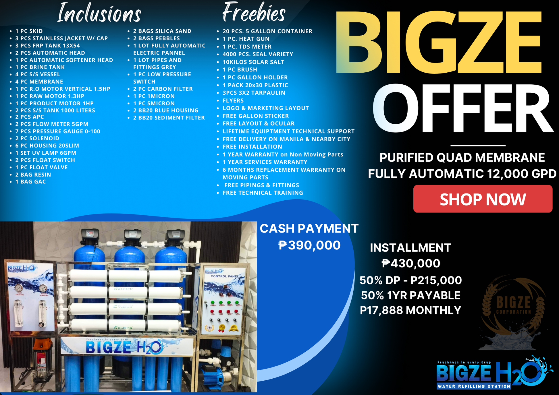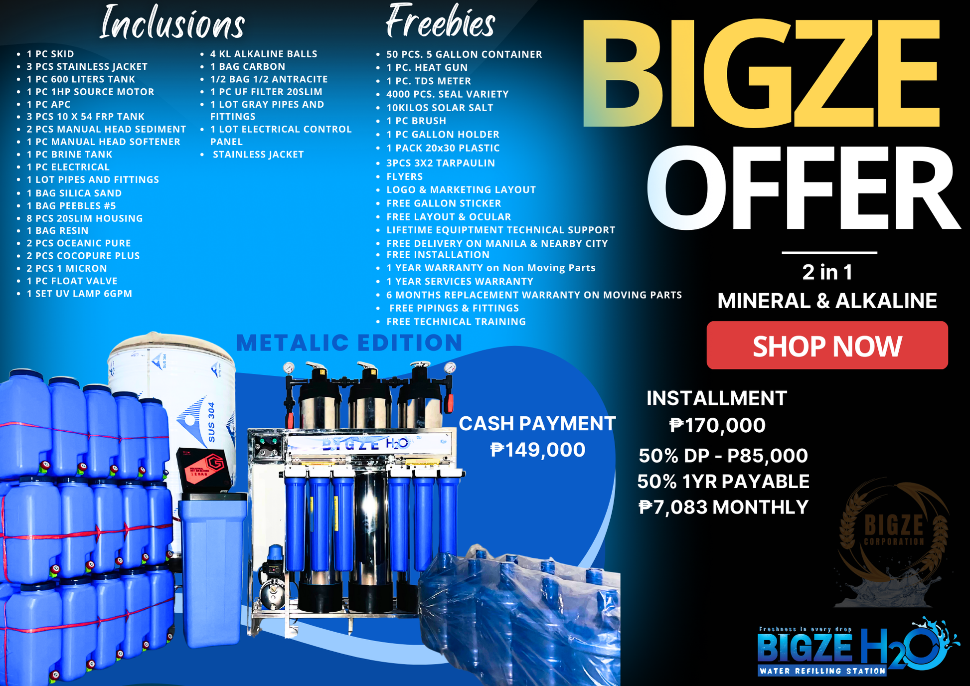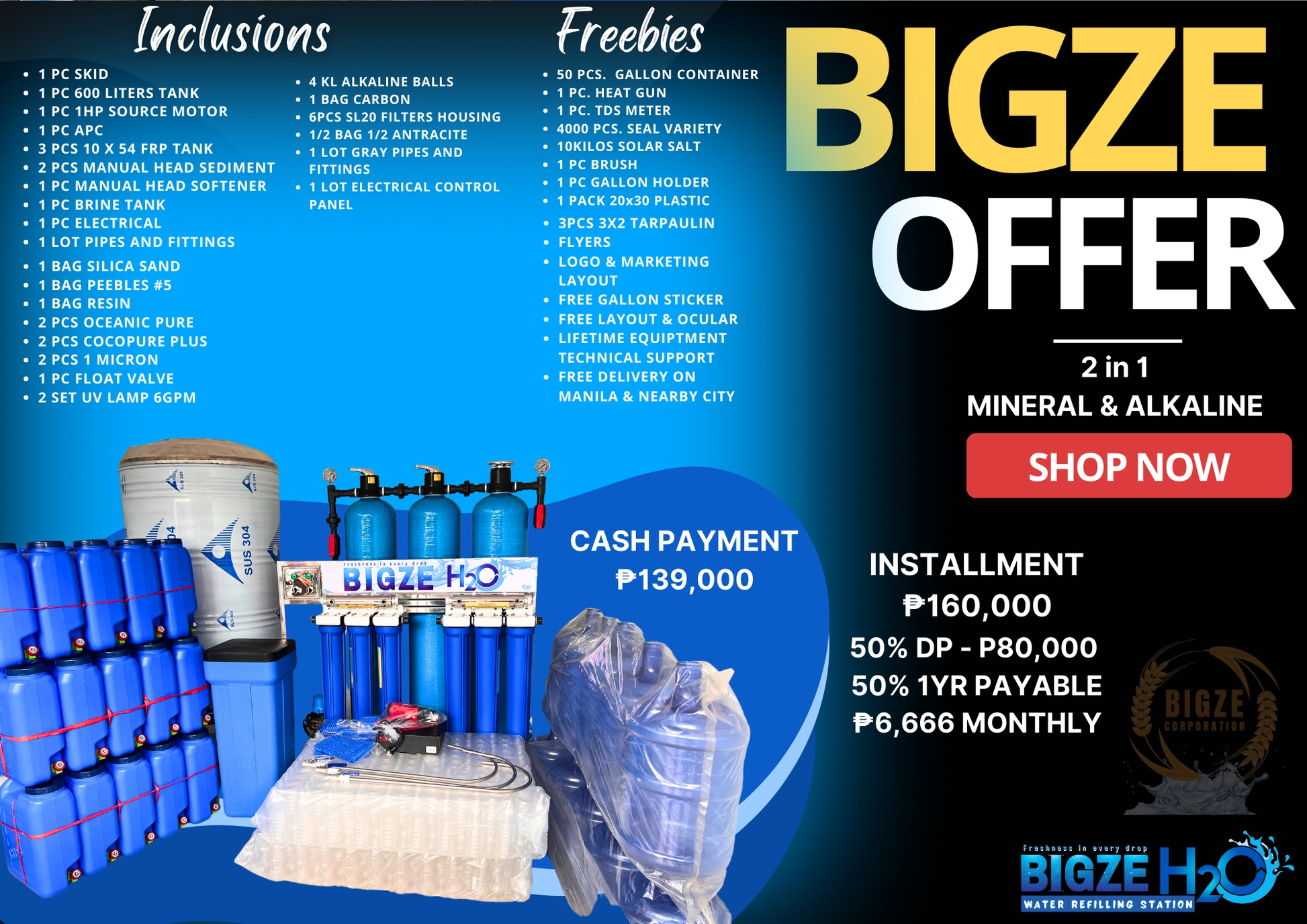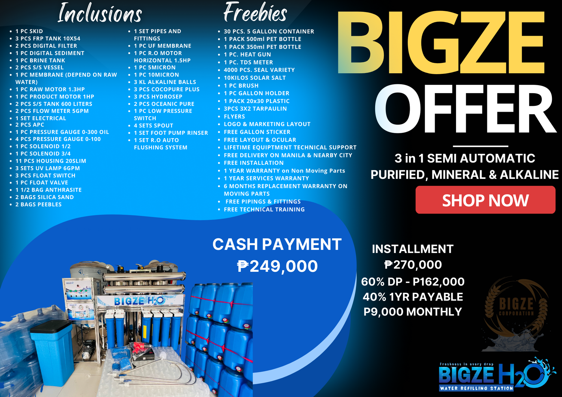 Introducing our Complete and Ready-to-Operate Water Refilling Station Package, carefully designed by BigZe Corporation to simplify the process of starting and running your own water refilling business. With this comprehensive package, we provide all the necessary components and support to ensure a hassle-free experience.