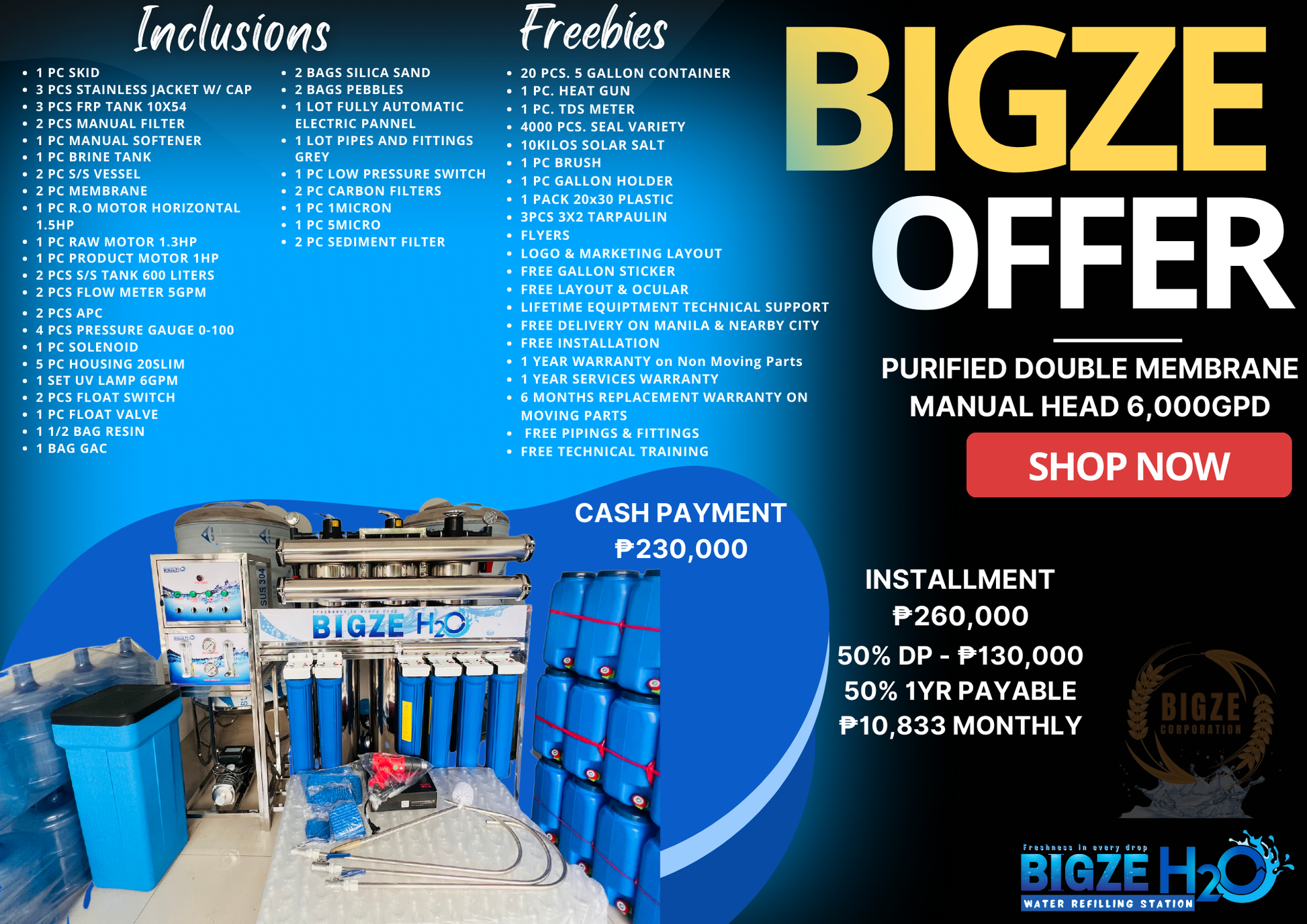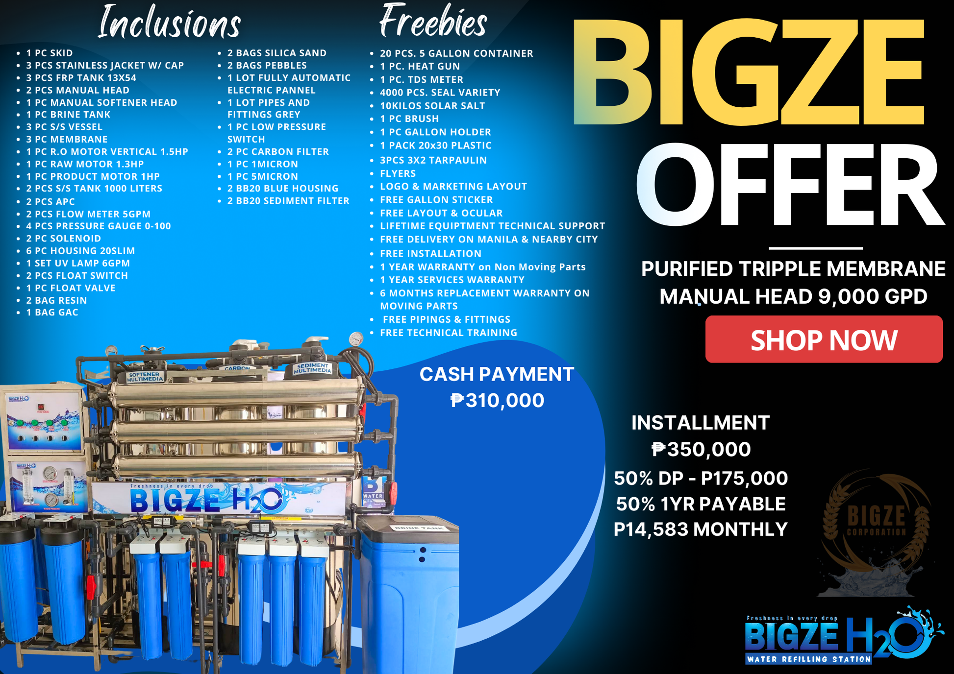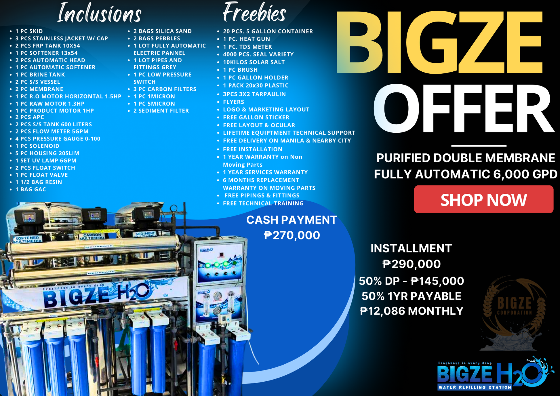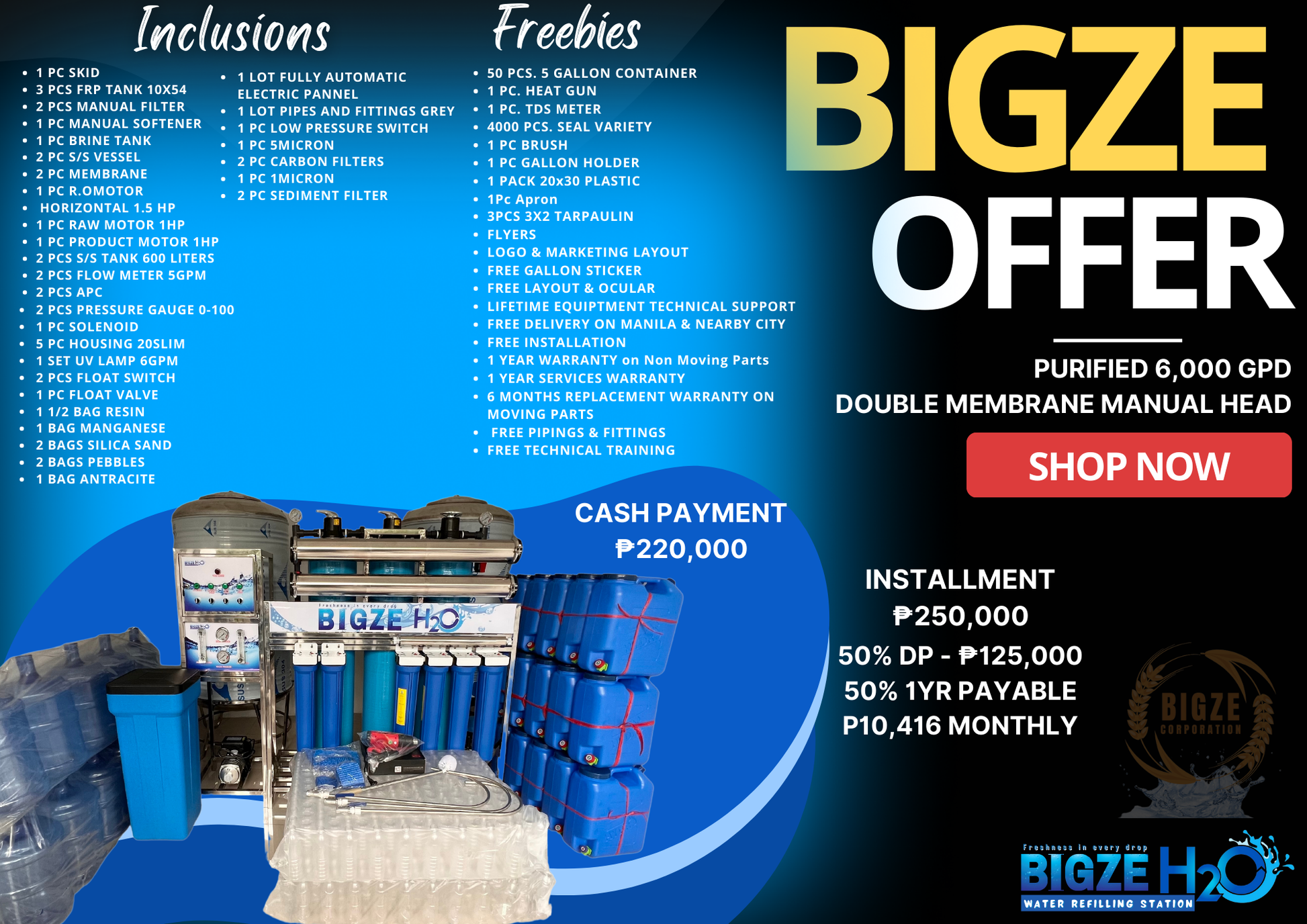 Introducing our Complete and Ready-to-Operate Water Refilling Station Package, carefully designed by BigZe Corporation to simplify the process of starting and running your own water refilling business. With this comprehensive package, we provide all the necessary components and support to ensure a hassle-free experience.
